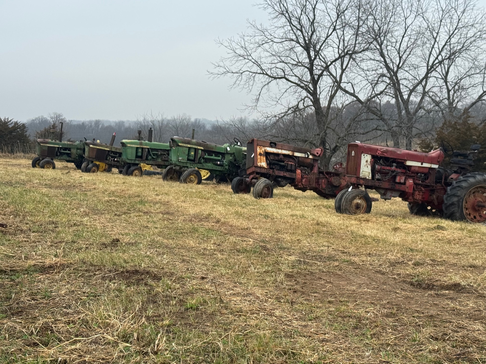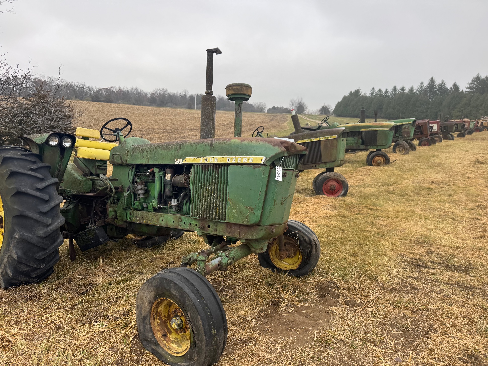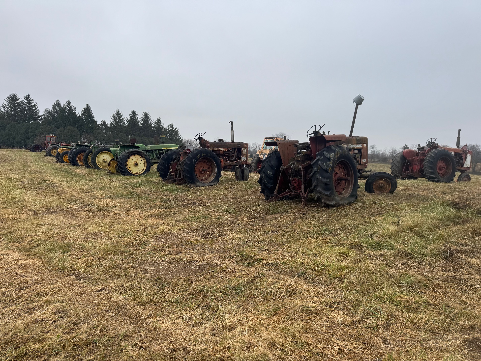 60 plus tractors for salvage including: Several JD 3010’s,3020’s, 4010’s & 4020’s, some 2 cylinders, utilities, & Hi Crops. Diesels, gas, LP’s, IHC, Case, MM, 2 vintage skid steer loaders.