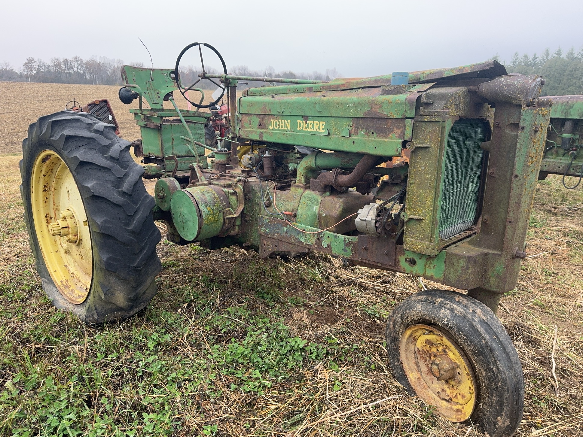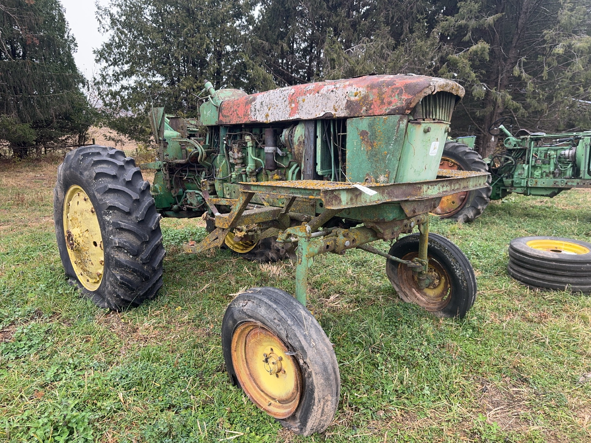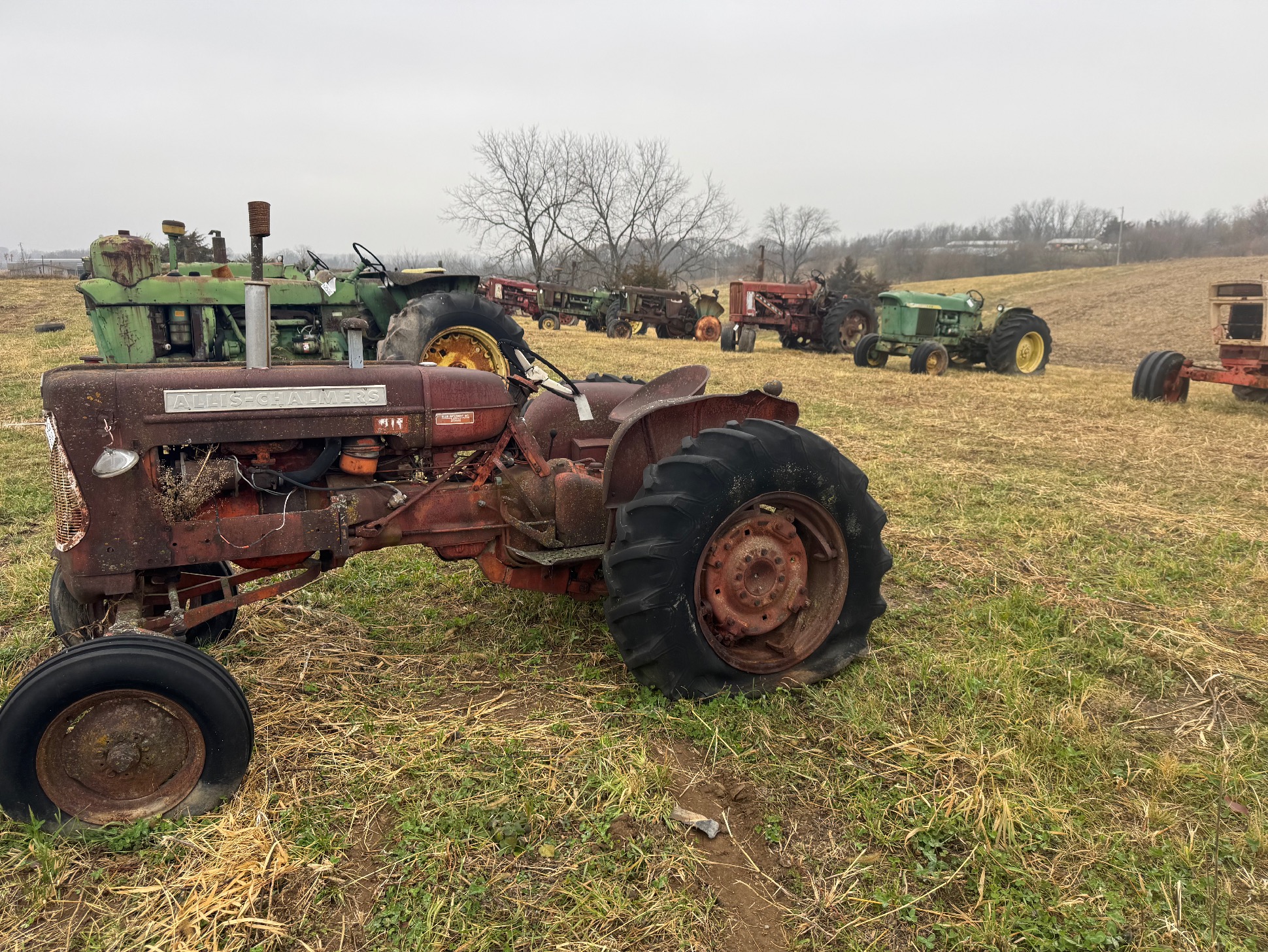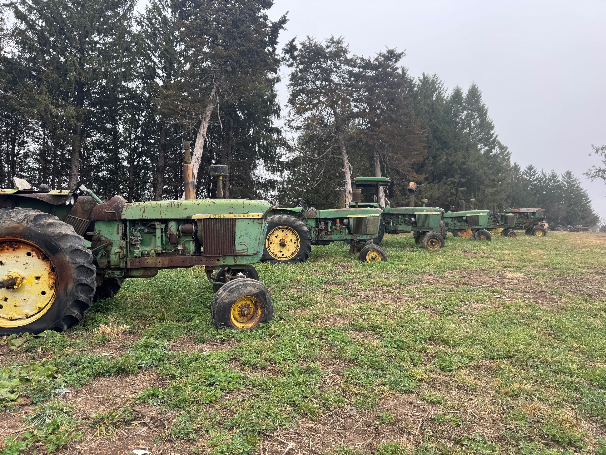60 plus tractors for salvage including: Several JD 3010’s,3020’s, 4010’s & 4020’s, some 2 cylinders, utilities, & Hi Crops. Diesels, gas, LP’s, IHC, Case, MM, 2 vintage skid steer loaders.